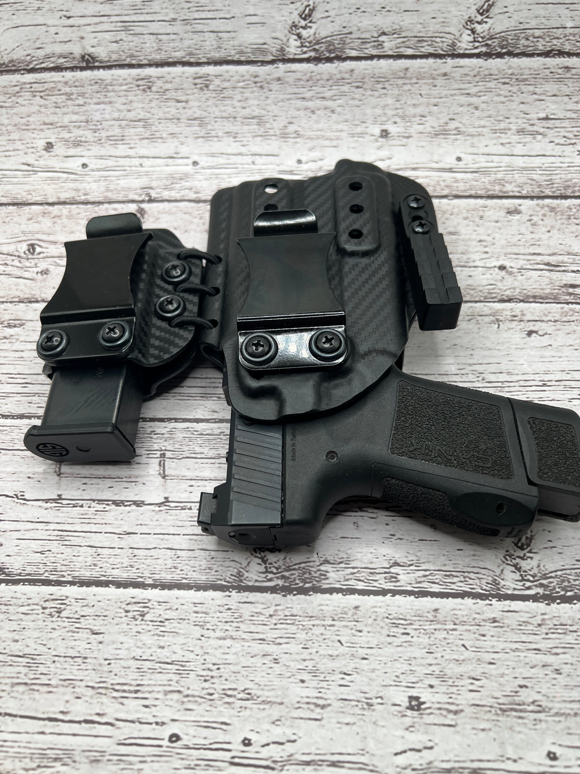 The Canik Mete MC9 is a popular pistol model that is designed for concealed carry. An IWB (inside the waistband) holster is a type of holster that is worn inside the waistband of the pants, providing a comfortable and secure fit for concealed carry.