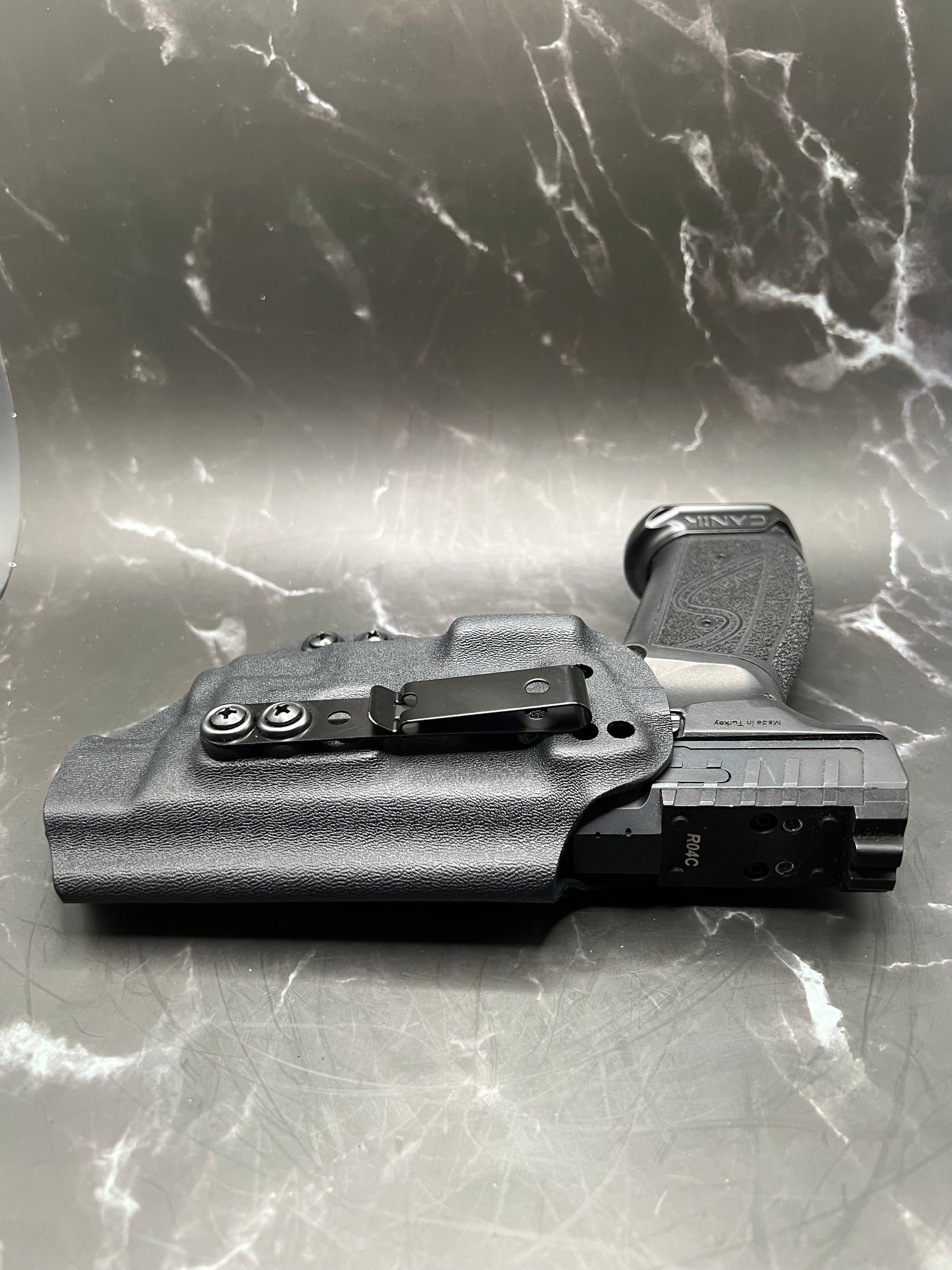 A Kydex holster is made from a thermoplastic material that is durable, lightweight, and custom-molded to fit the specific shape of the Canik . Kydex holsters are known for their durability, retention, and ease of use.