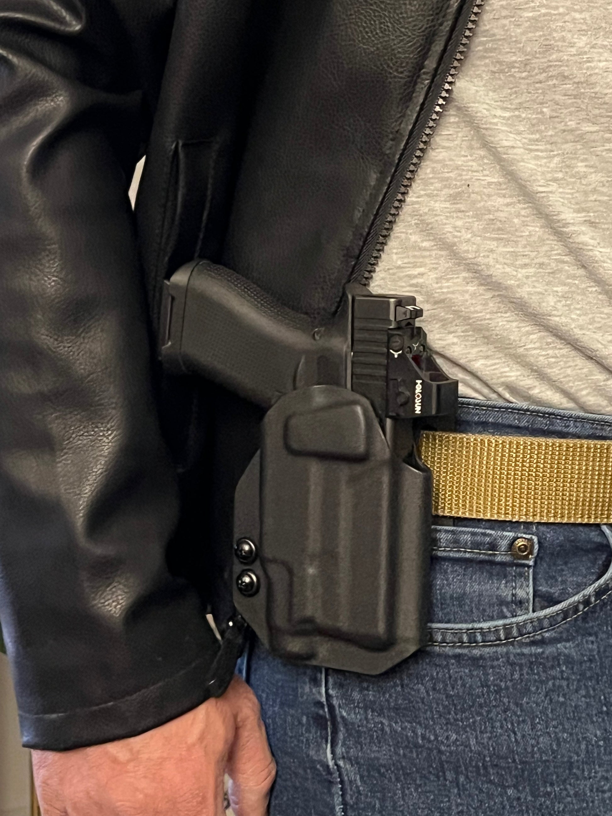 The Glock is a popular pistol model that is designed for concealed carry. An OWB (outside the waistband) holster is a type of holster that is worn inside the waistband of the pants, providing a comfortable and secure fit for concealed carry.