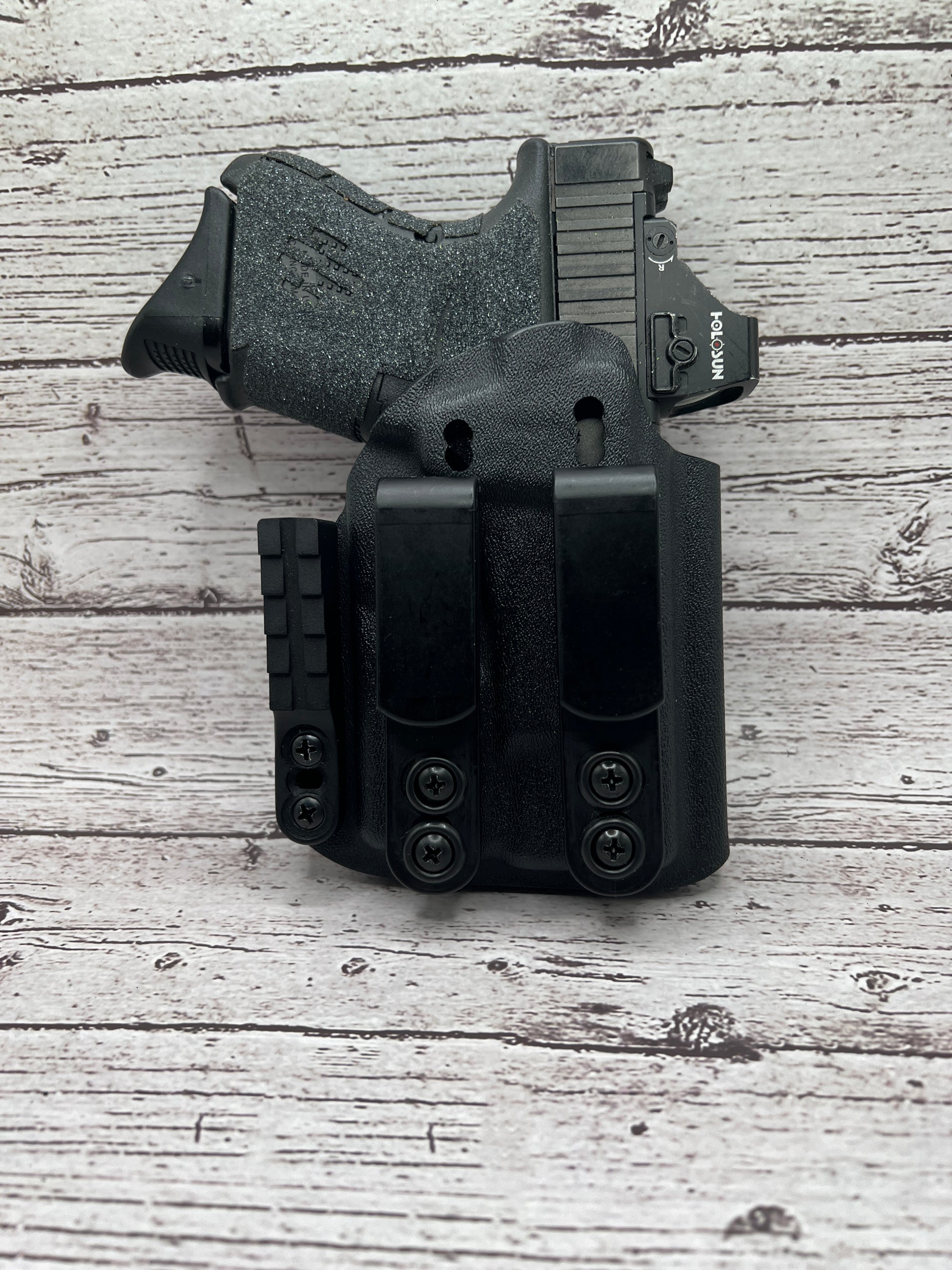DISCLAIMER: “GLOCK” is a federally registered trademark of GLOCK, Inc. and is one of many trademarks registered by GLOCK, Inc. and GLOCK Ges.m.b.H. Neither Dnz Holsters nor this site are affiliated in any manner with, or otherwise endorsed by, GLOCK, Inc. or GLOCK Ges.m.b.H. The use of any “GLOCK” trademarks on this page is merely to advertise the sale of pistols, parts, components or accessories that are compatible with GLOCK. For genuine GLOCK, Inc. and GLOCK Ges.m.b.H. products and parts visit www.glock.com.