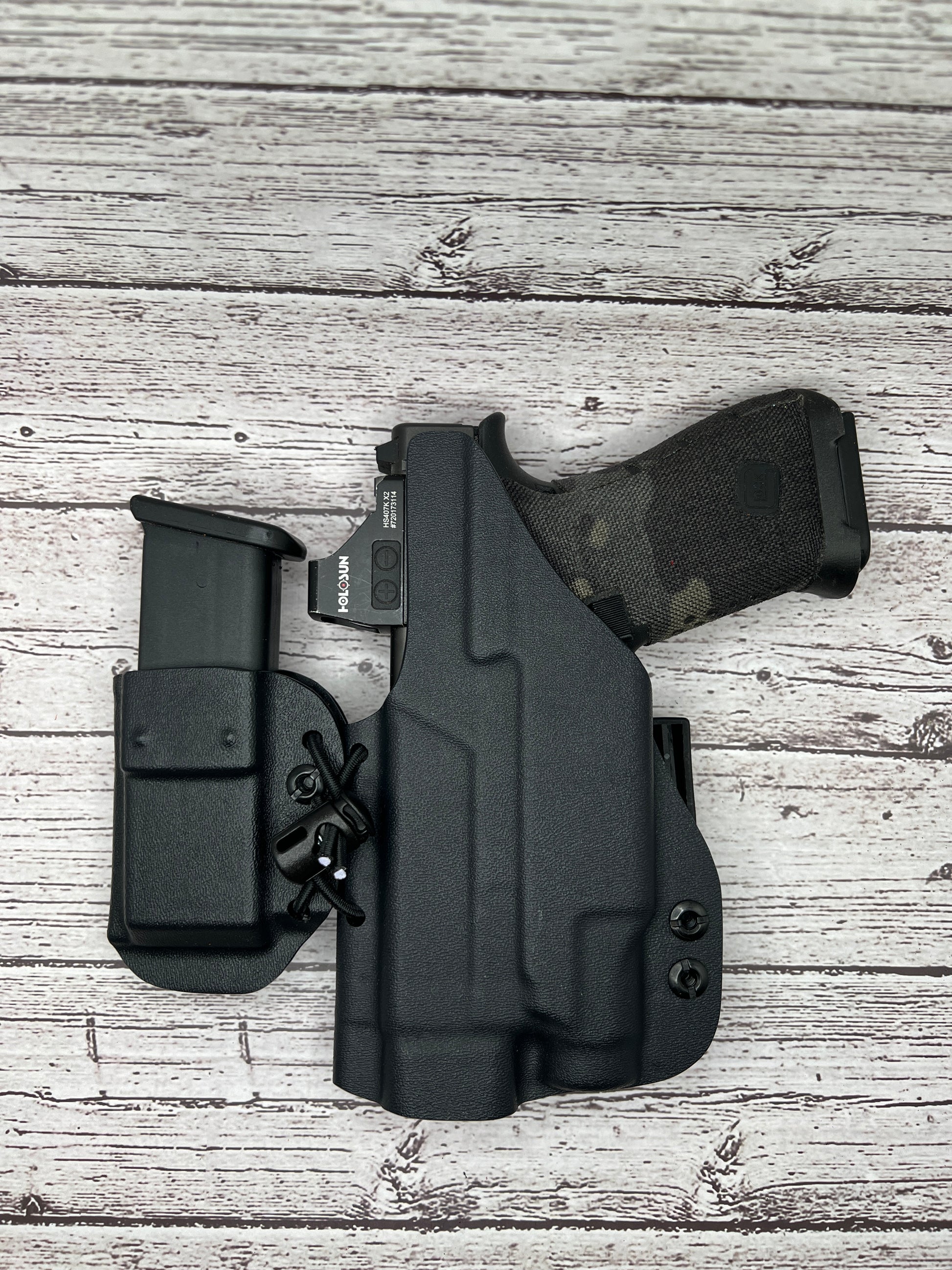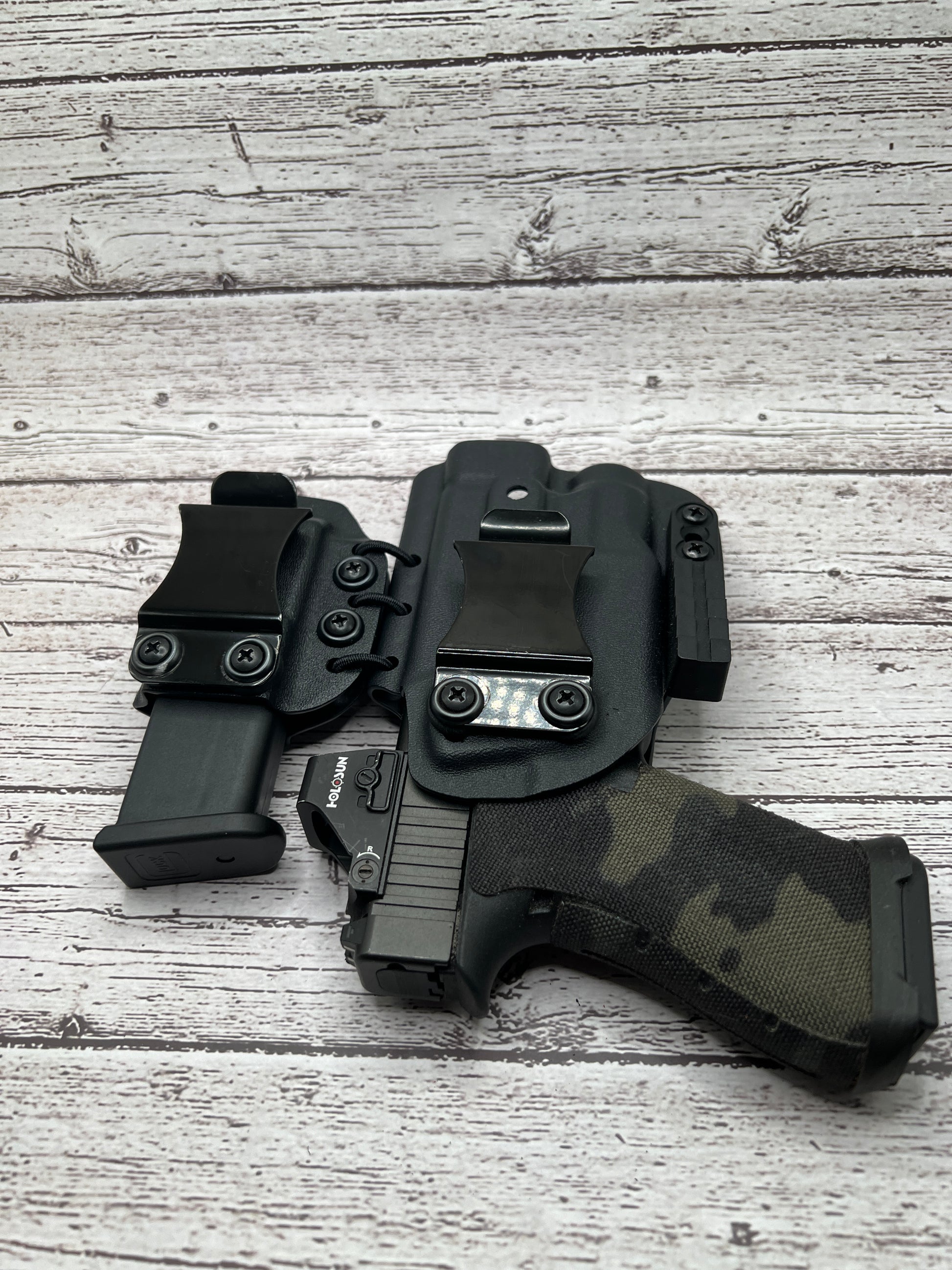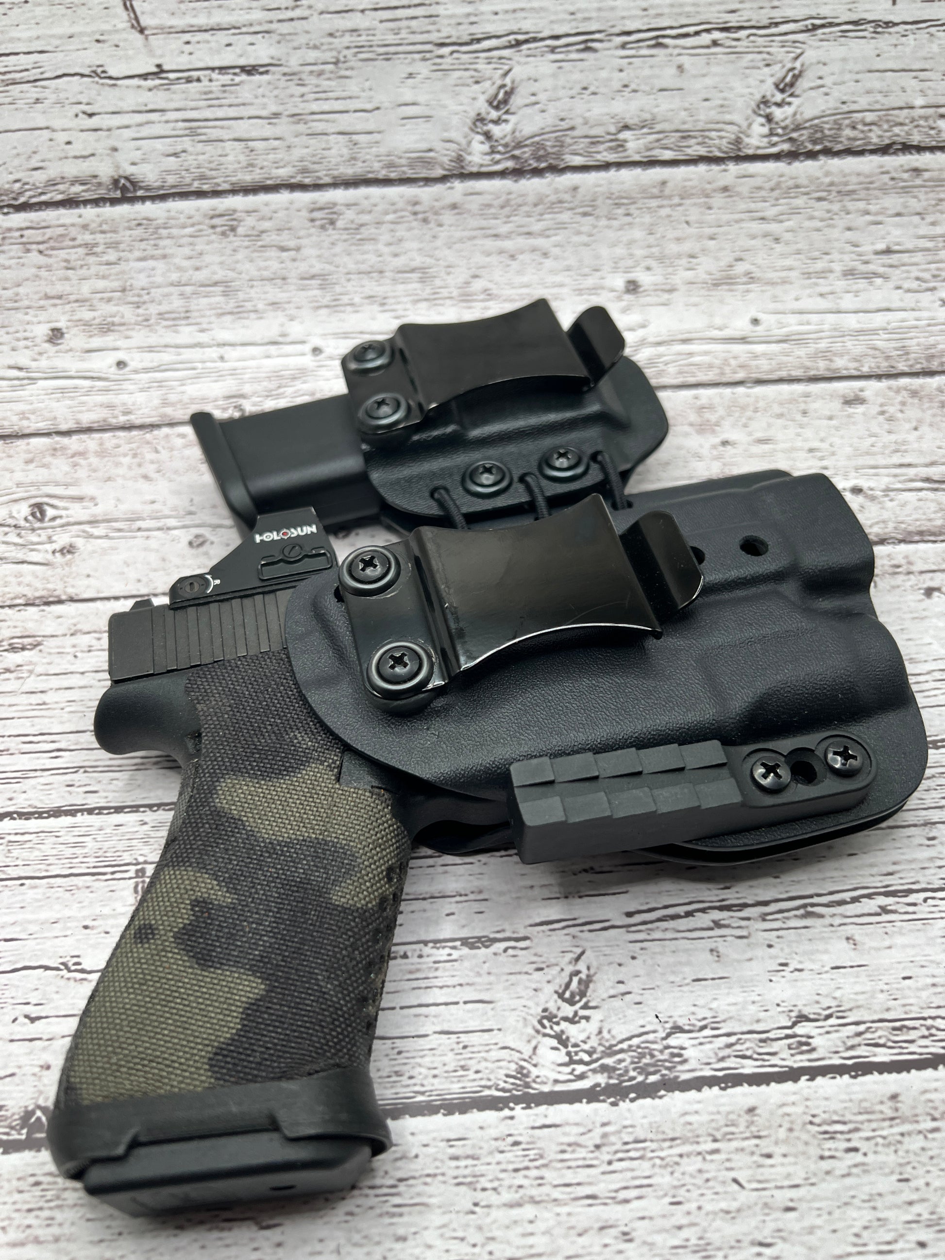 The Glock 43X MOS is a popular pistol model that is designed for concealed carry. An IWB (inside the waistband) holster is a type of holster that is worn inside the waistband of the pants, providing a comfortable and secure fit for concealed carry.