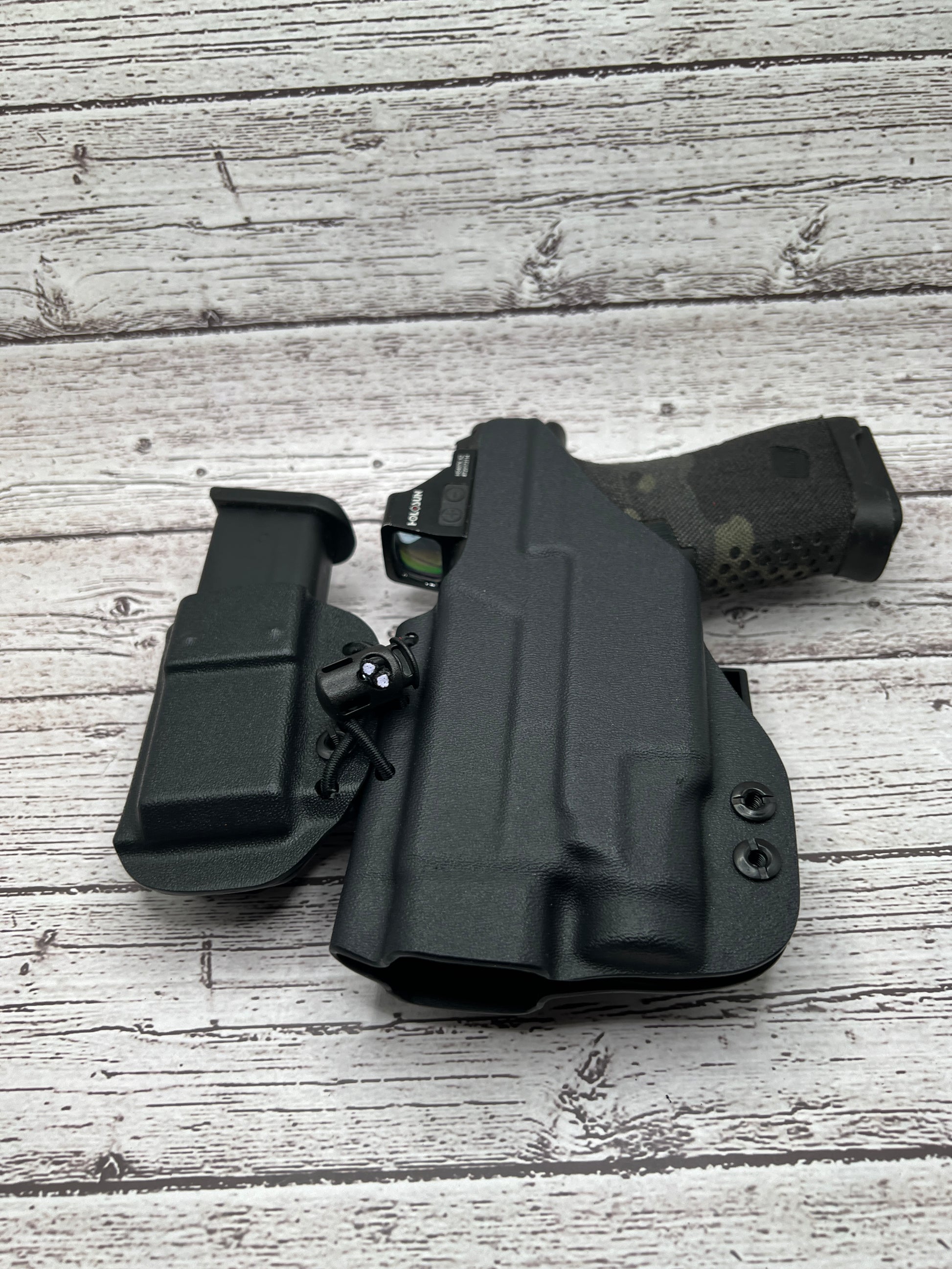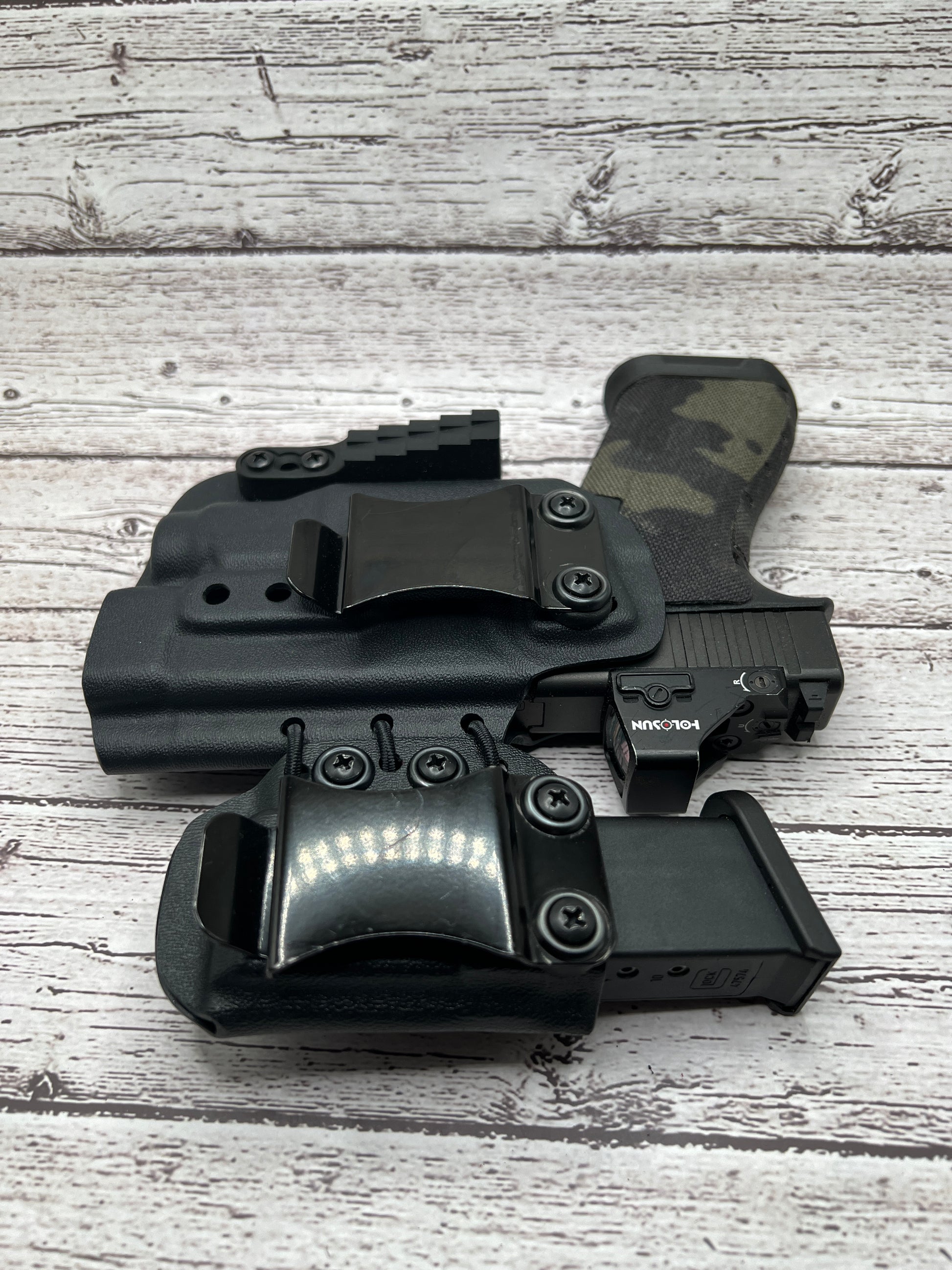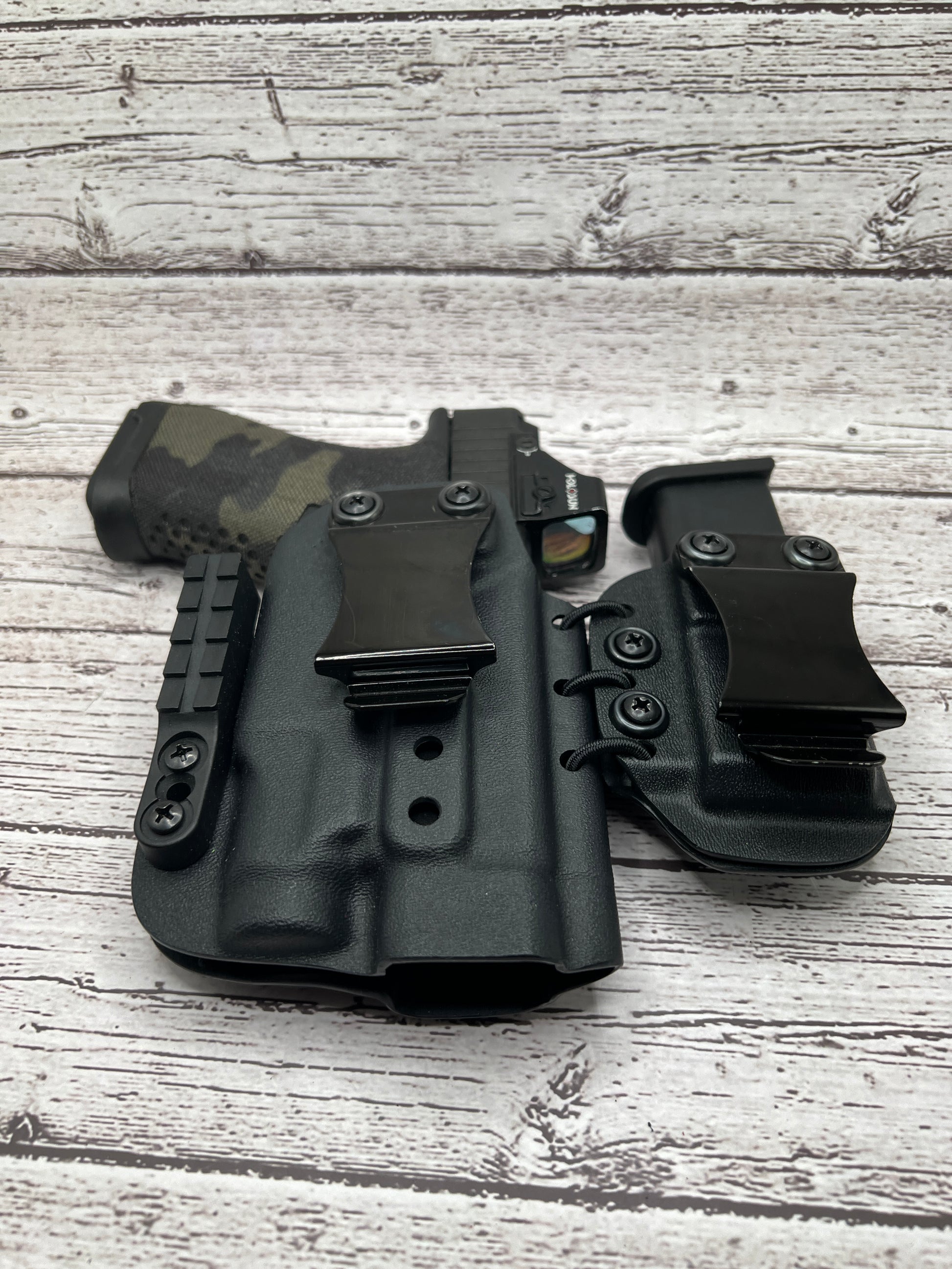 The Glock 43X MOS is a popular pistol model that is designed for concealed carry. An IWB (inside the waistband) holster is a type of holster that is worn inside the waistband of the pants, providing a comfortable and secure fit for concealed carry.