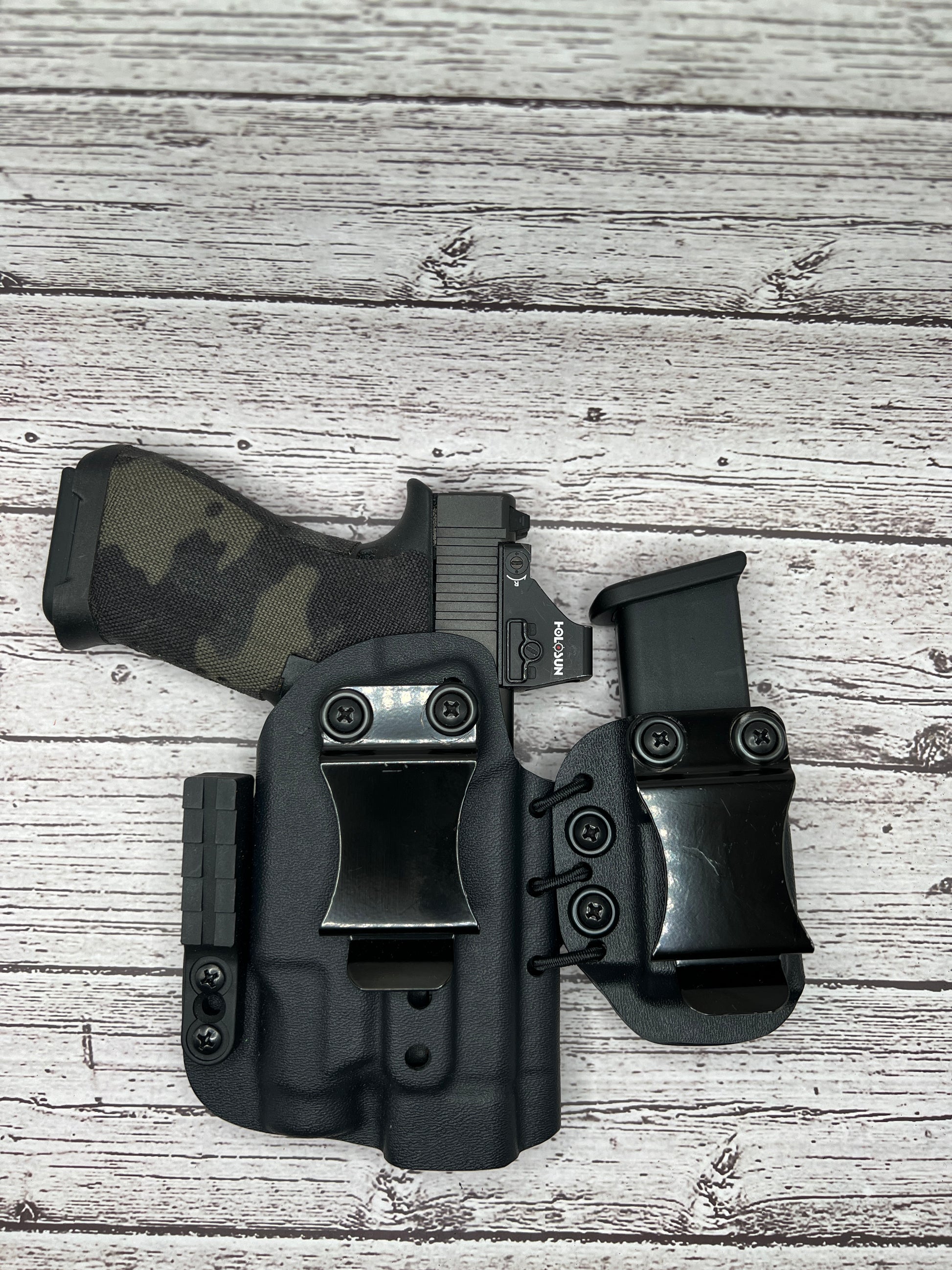 The Glock 43X MOS is a popular pistol model that is designed for concealed carry. An IWB (inside the waistband) holster is a type of holster that is worn inside the waistband of the pants, providing a comfortable and secure fit for concealed carry.