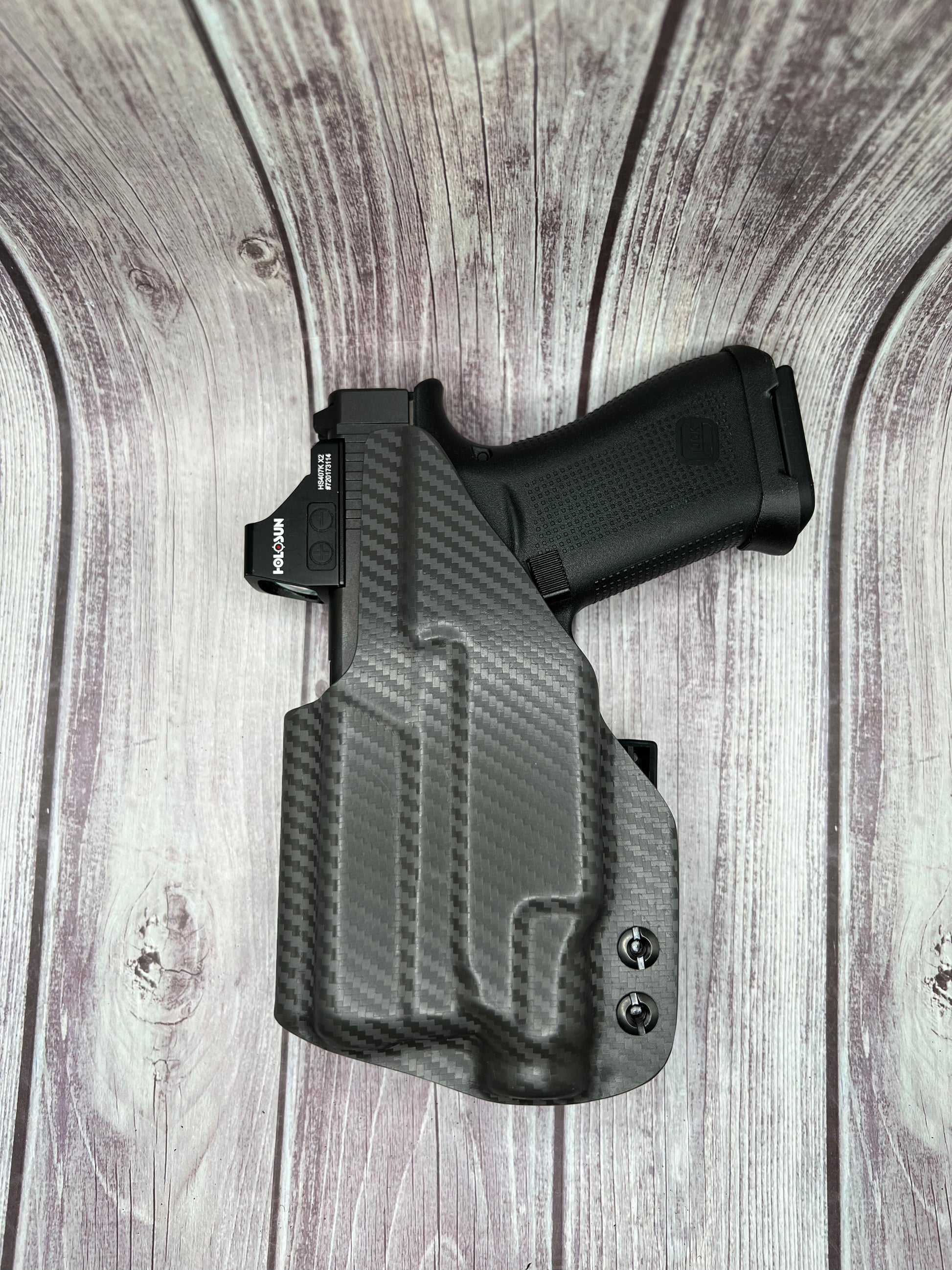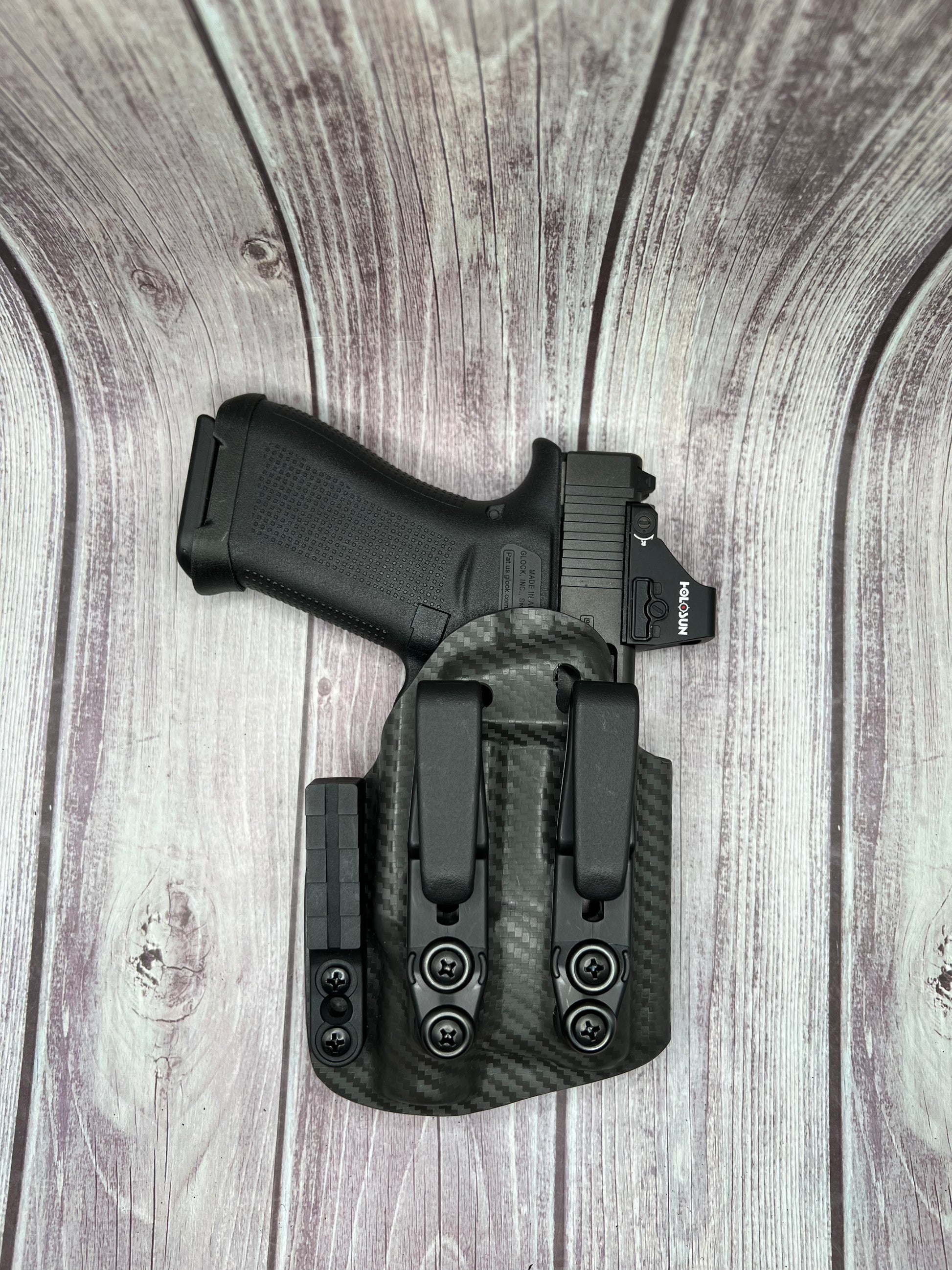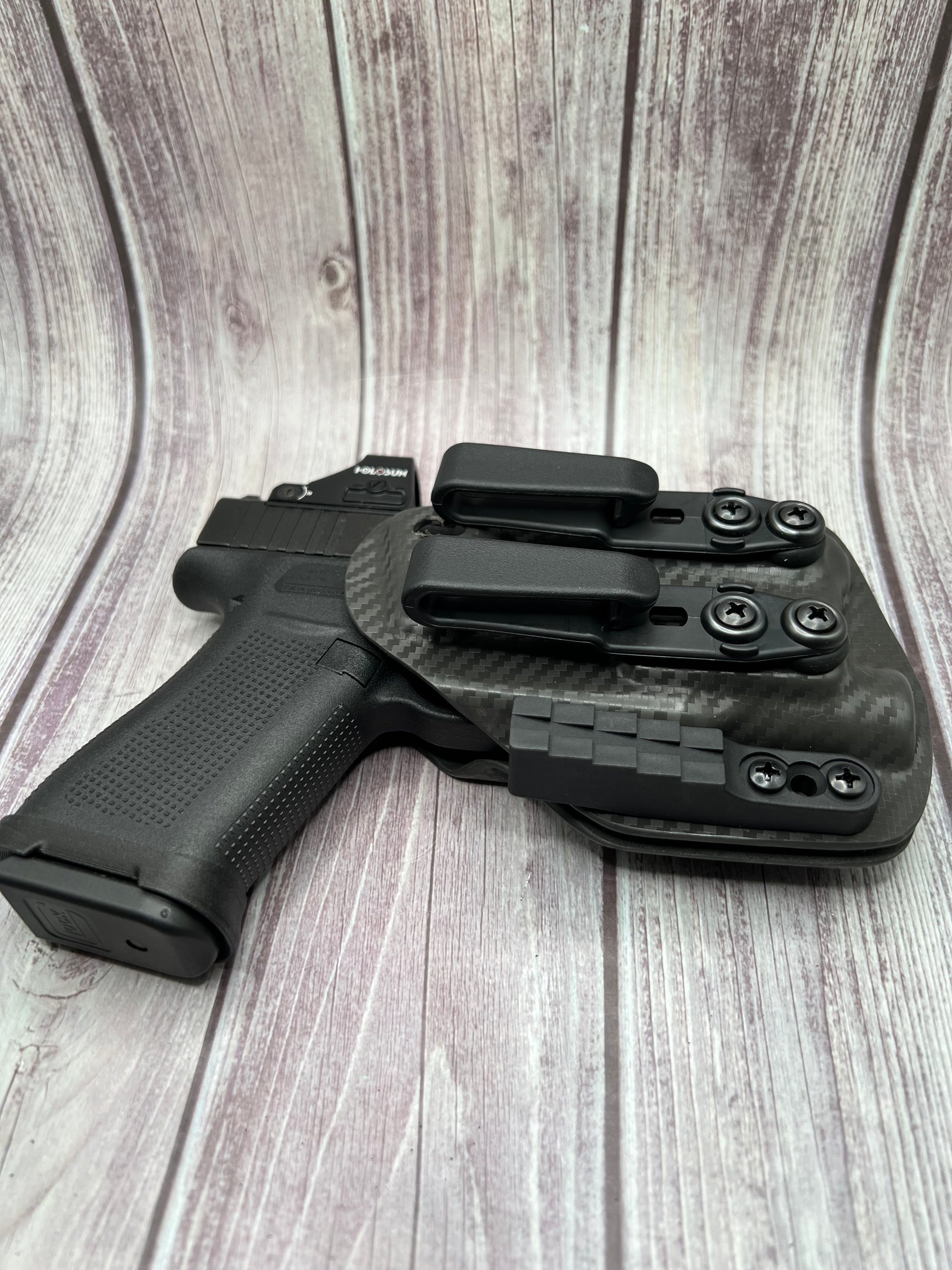 The Glock 43X MOS is a popular pistol model that is designed for concealed carry. An IWB (inside the waistband) holster is a type of holster that is worn inside the waistband of the pants, providing a comfortable and secure fit for concealed carry.