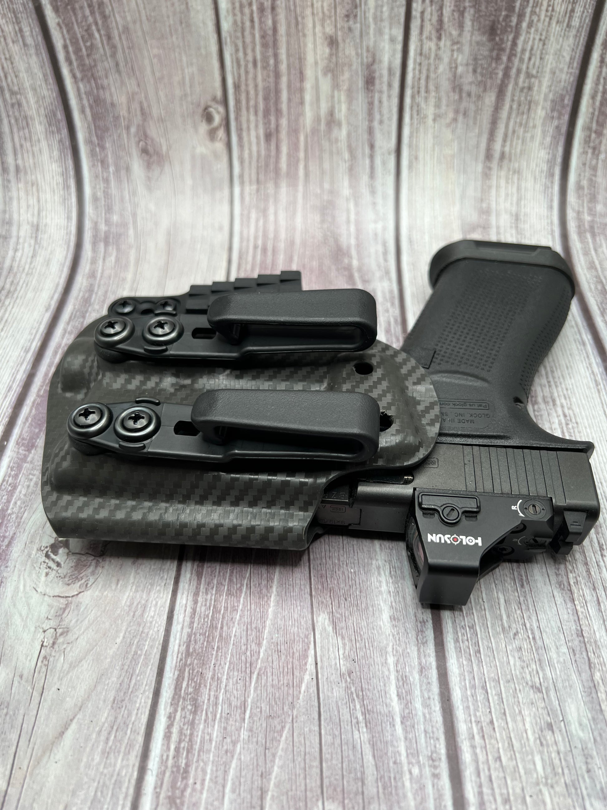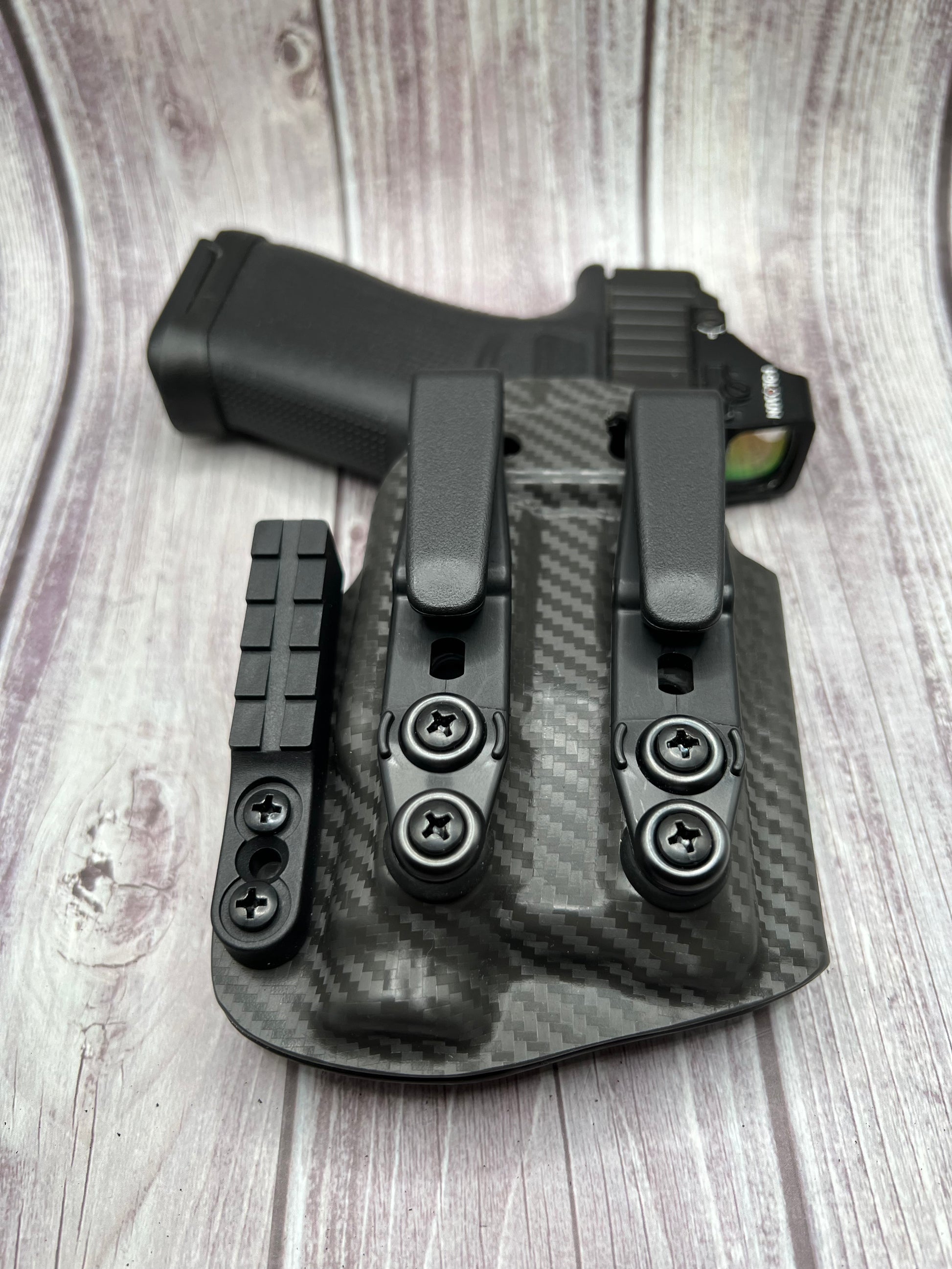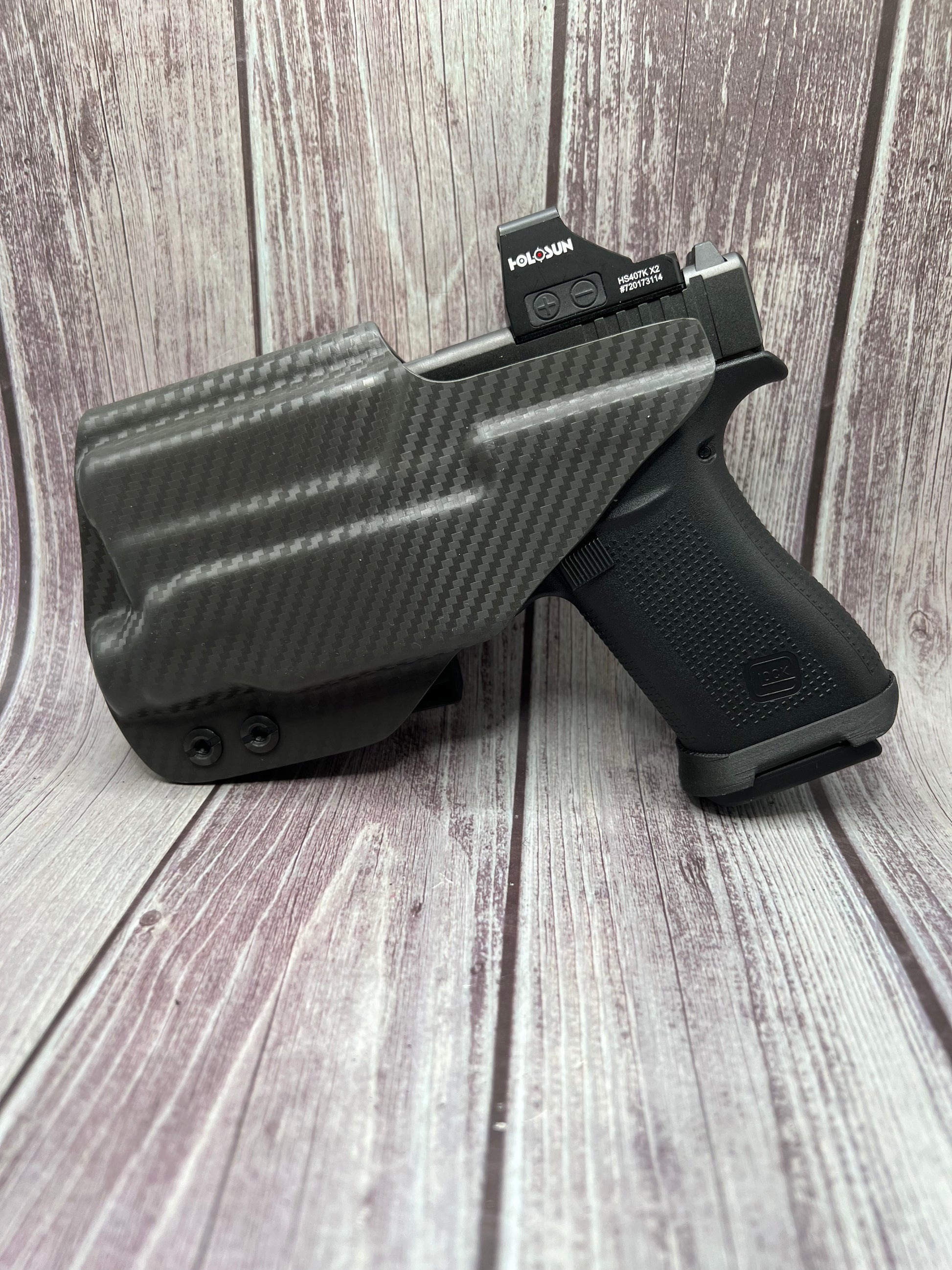 The Glock 43X MOS is a popular pistol model that is designed for concealed carry. An IWB (inside the waistband) holster is a type of holster that is worn inside the waistband of the pants, providing a comfortable and secure fit for concealed carry.