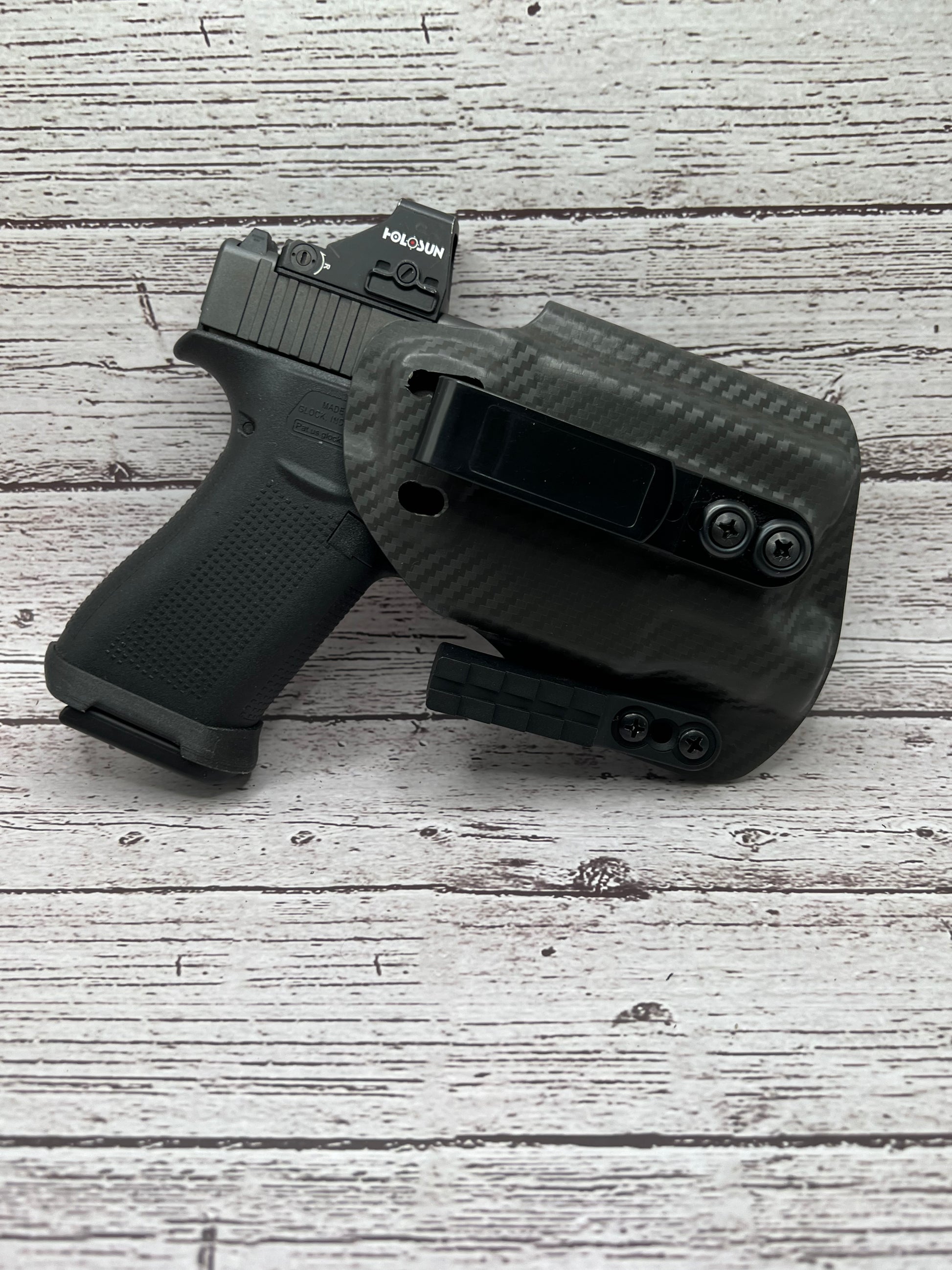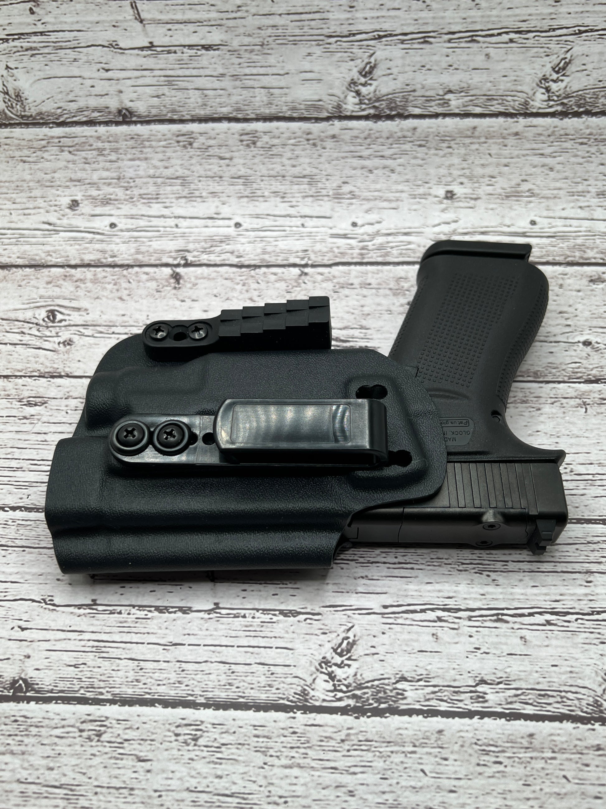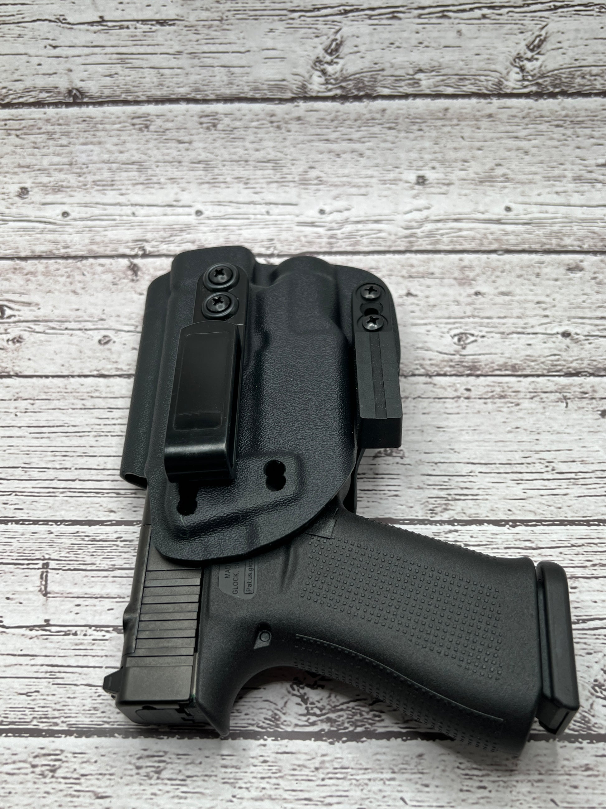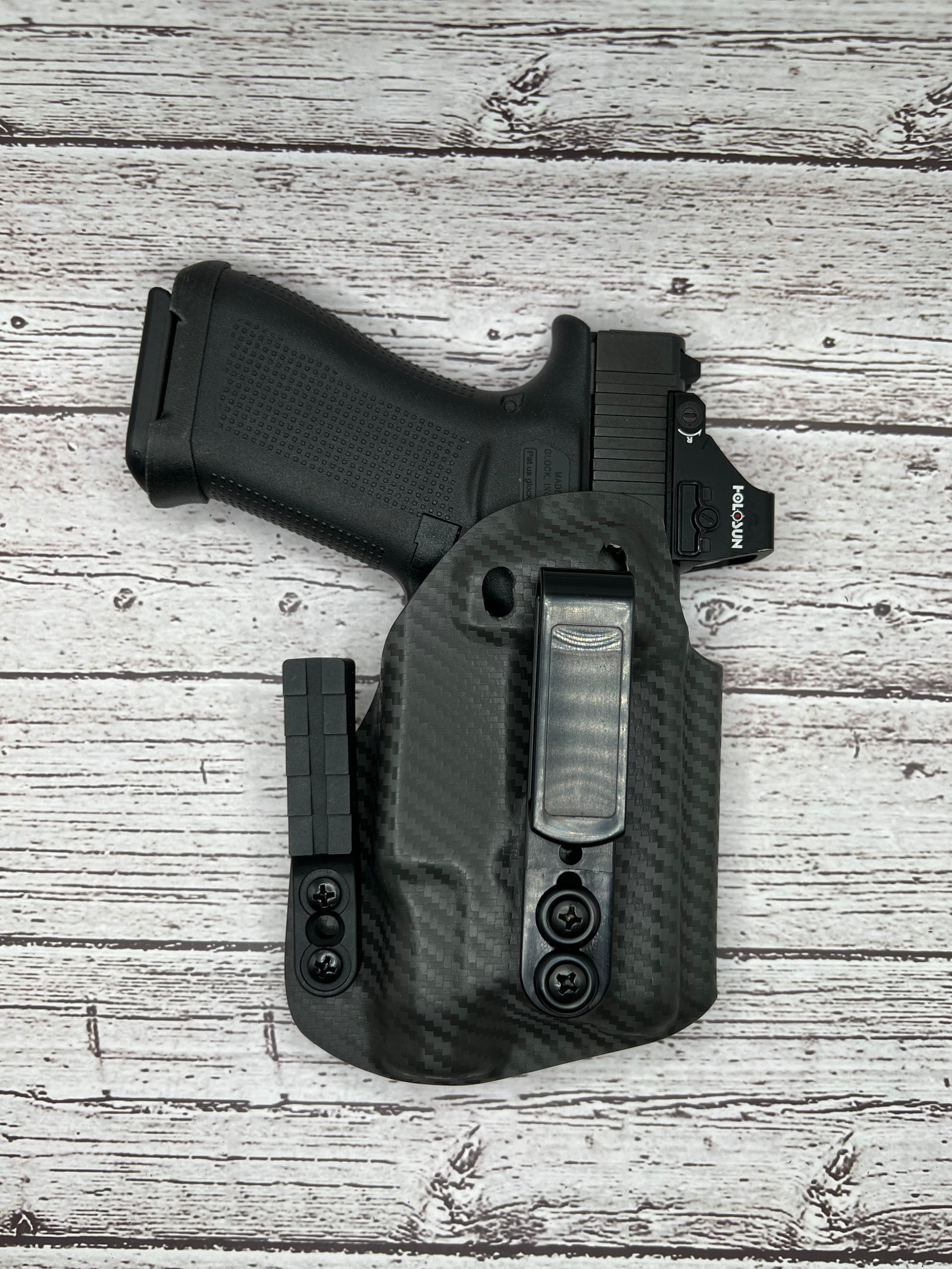 The Glock 43X MOS is a popular pistol model that is designed for concealed carry. An IWB (inside the waistband) holster is a type of holster that is worn inside the waistband of the pants, providing a comfortable and secure fit for concealed carry.