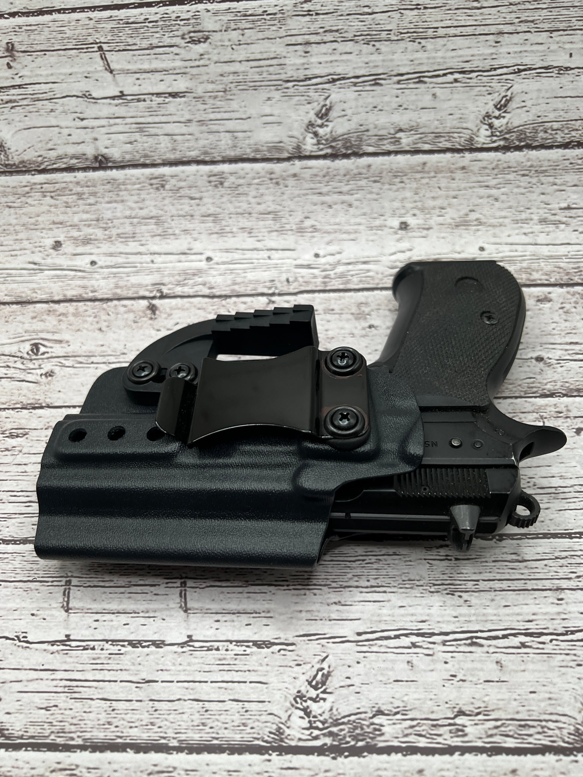A Cz IWB Kydex holster is a holster specifically designed to fit the Cz pistol and worn inside the waistband of the pants, made from Kydex material to provide a durable and secure fit for concealed carry.