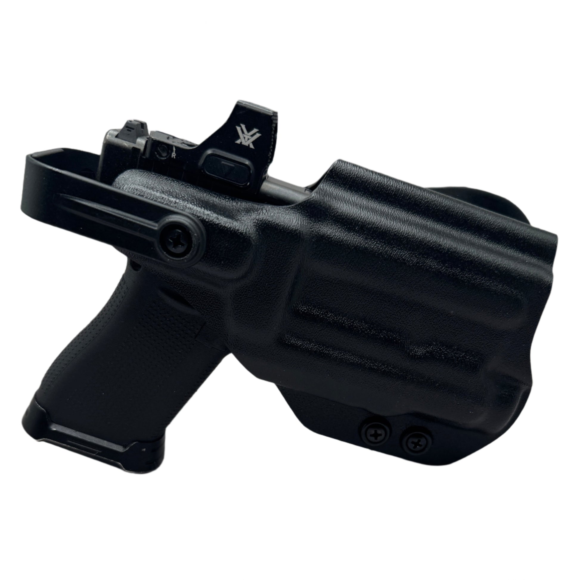 The Glock 43X MOS is a popular pistol model that is designed for concealed carry. An OWB (outside the waistband) holster is a type of holster that is worn outside the waistband of the pants, providing a comfortable and secure fit for concealed carry.