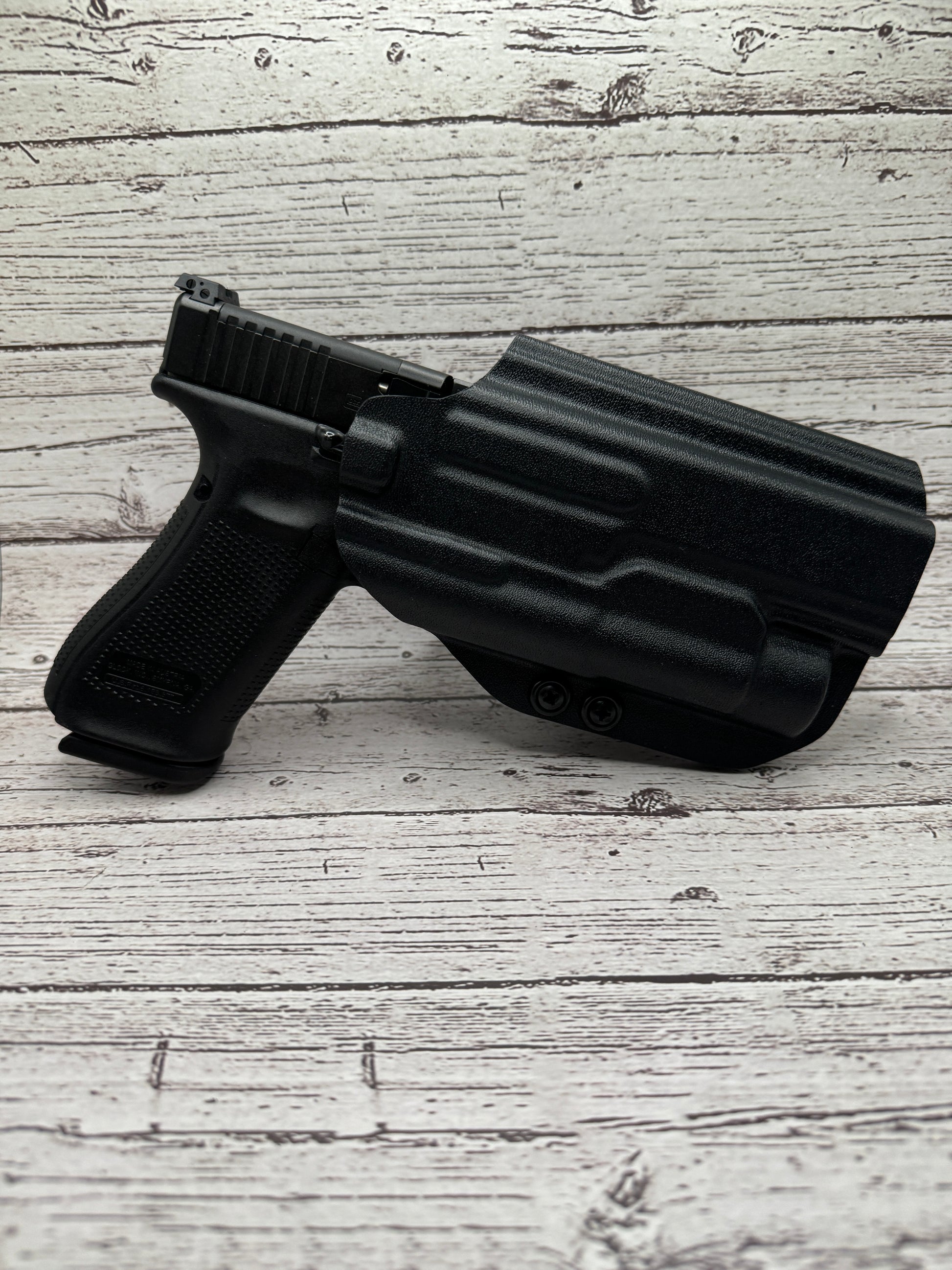 A Kydex holster is made from a thermoplastic material that is durable, lightweight, and custom-molded to fit the specific shape of the Glock . Kydex holsters are known for their durability, retention, and ease of use.