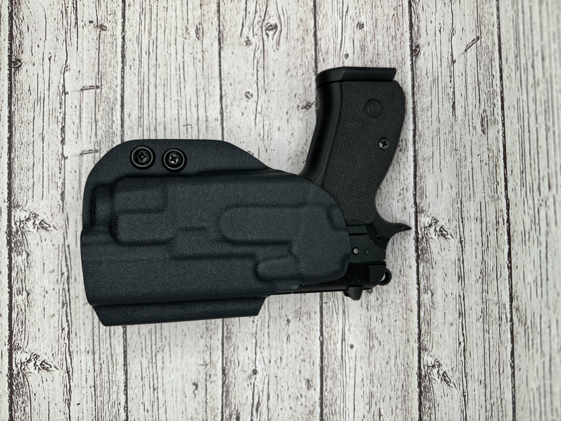A CZ OWB Kydex holster is a holster specifically designed to fit the CZ pistol and worn outside the waistband of the pants, made from Kydex material to provide a durable and secure fit for concealed carry.
