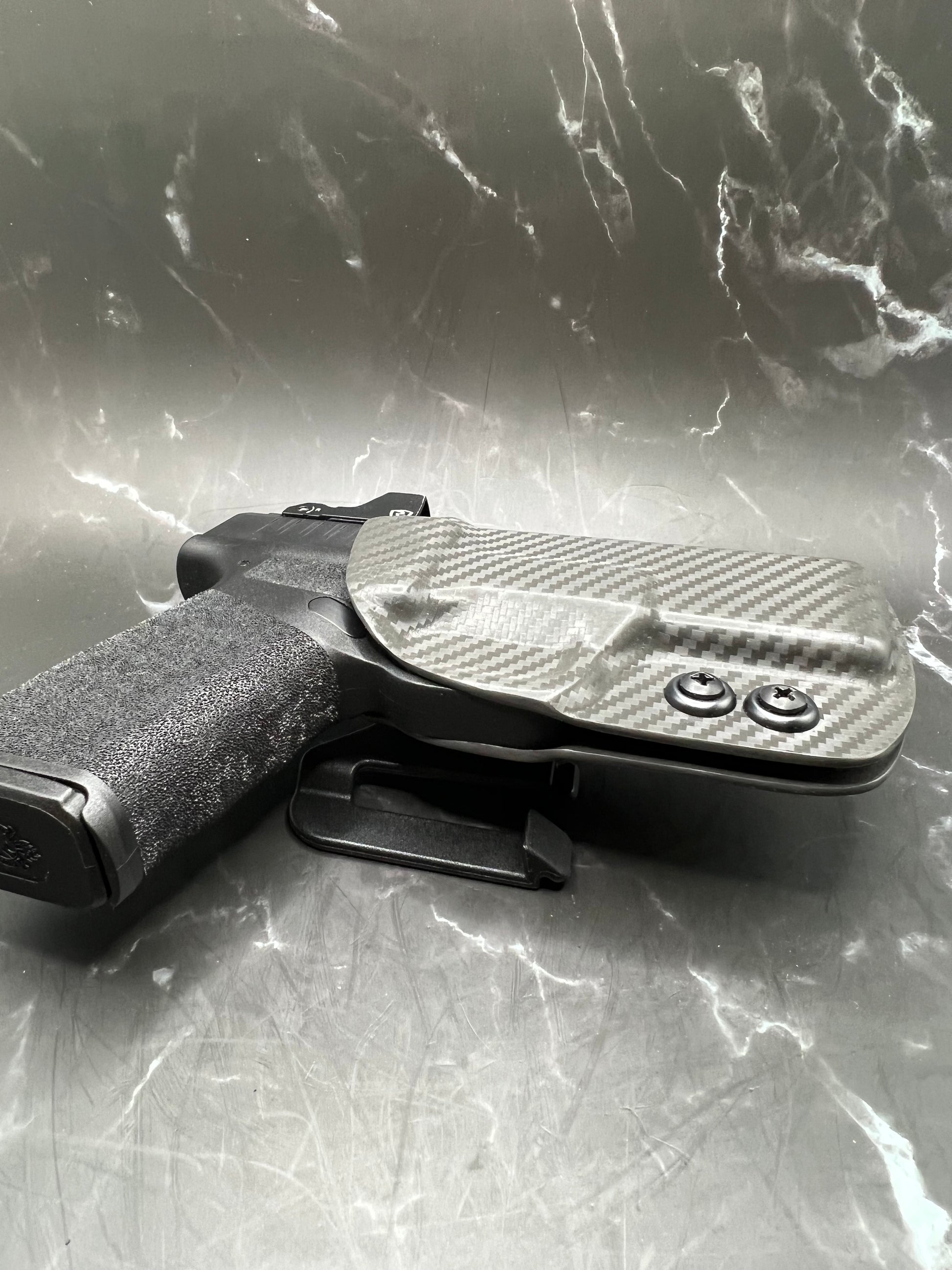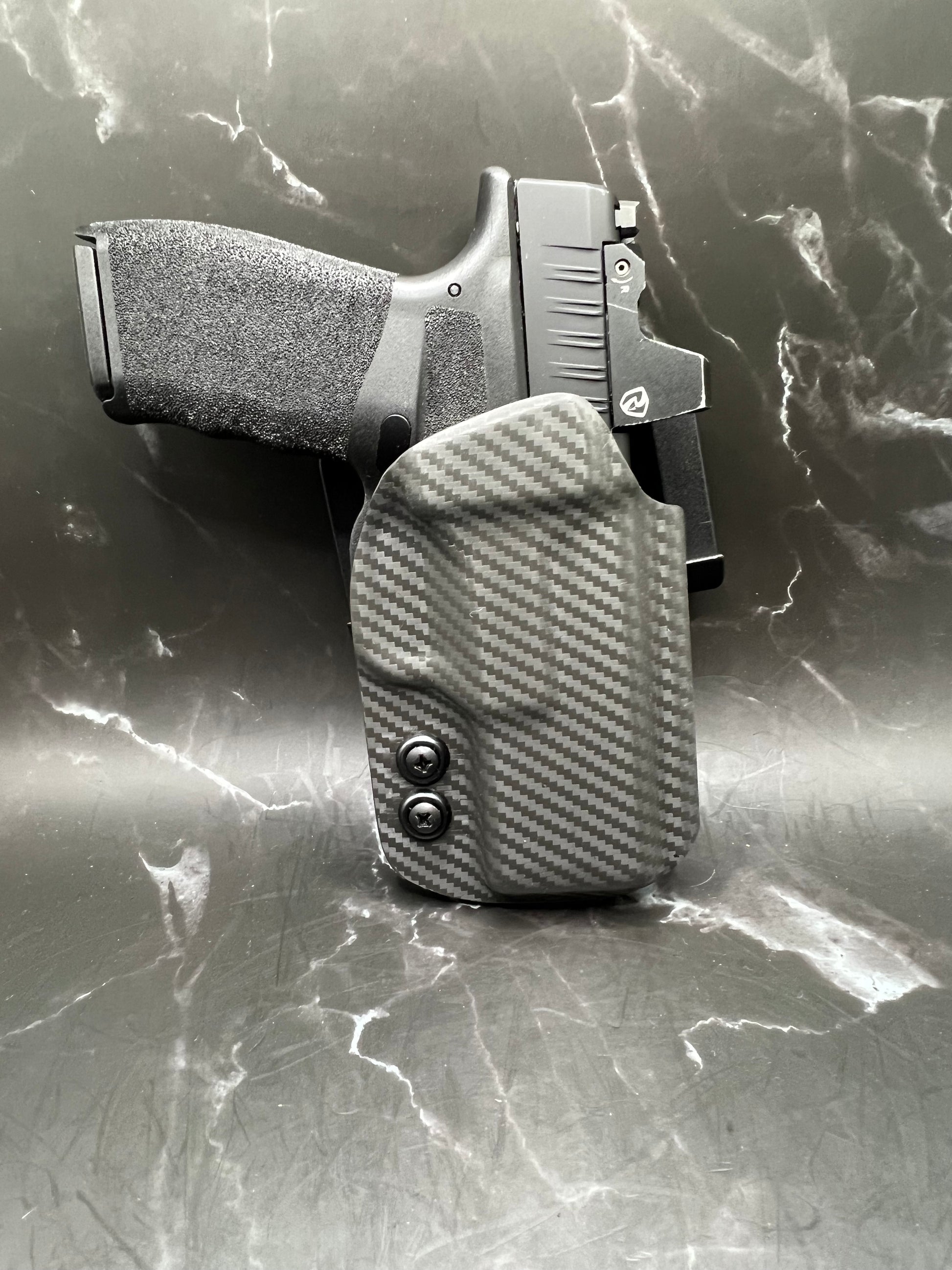 A Kydex holster is made from a thermoplastic material that is durable, lightweight, and custom-molded to fit the specific shape of the Springfield Armory Hellcat Pro. Kydex holsters are known for their durability, retention, and ease of use.